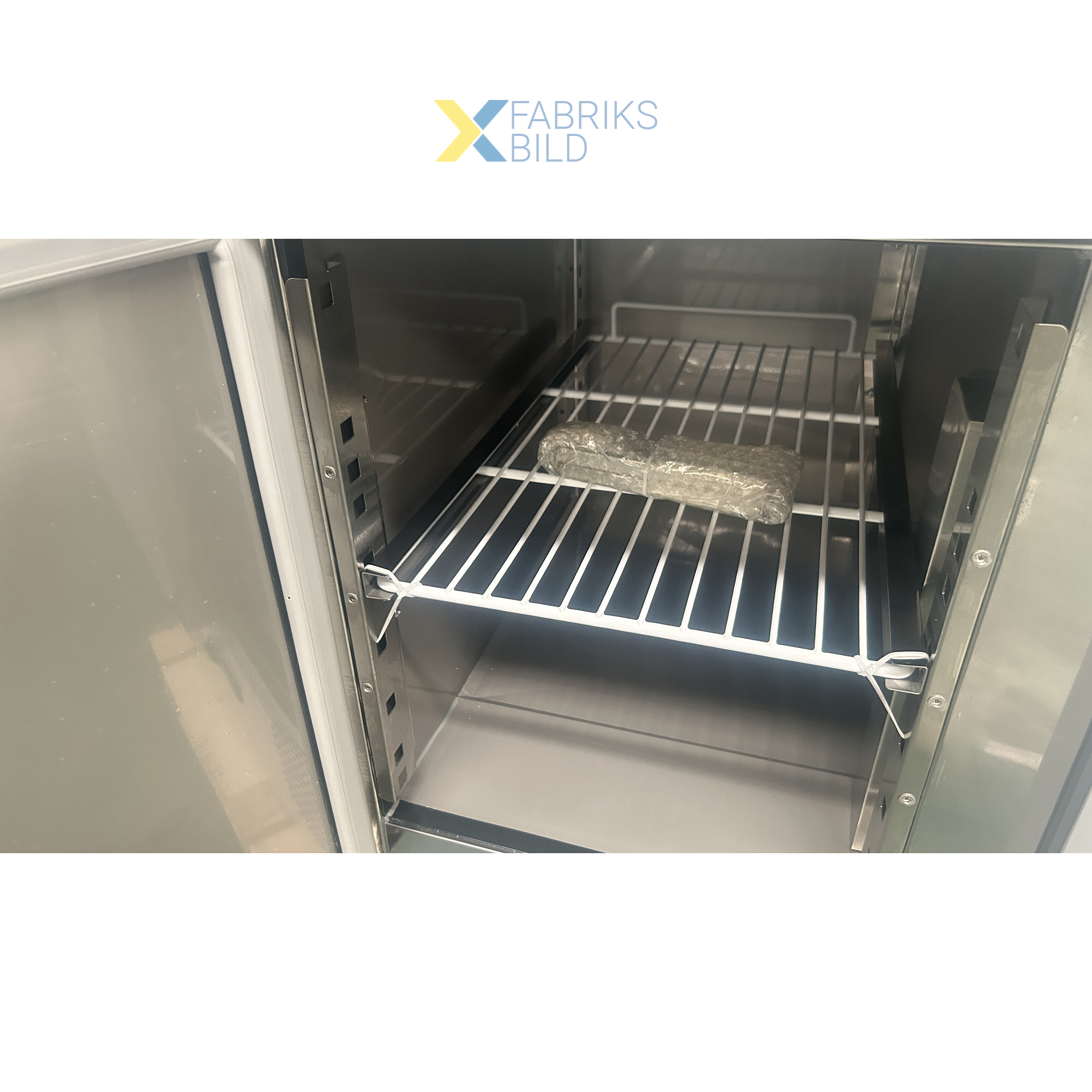 Original price was: 1944,16 €.719,34 €Current price is: 719,34 €. (ei sis. KM) Komerciālais salātu ledusskapis ar noapaļotu stikla virsmu. Viens no mūsu populārākajiem profesionālajiem letes saldētājiem. Divas nerūsējošā tērauda cietās durvis. Atvērta virsma, kas piemērota 2xGN1/1 traukiem un 3xGN1/6 konteineriem. Iekšpusē un ārpusē AISI304 nerūsējošā tērauda materiāls. Iekšējās noapaļotās malas vieglai tīrīšanai. Magnētiskā blīvēšanas sloksne saglabā auksto gaisu iekšā. Viegli noņemama bez instrumentiem. Digitālais termostats. Augstas kvalitātes kompresors. 1 x GN1/1 plaukts uz durvīm. Ventilatora dzesēšanas sistēma. Izmēri: 900x700x1330mm. Tilpums: 240 litri. Temperatūra: +2C līdz +8C. Barošanas avots: 230V / 1 fāze. Jauda: 210W. Dokumenti. Noklikšķiniet šeit, lai lejupielādētu CE atbilstības deklarāciju. Ir noliktavā