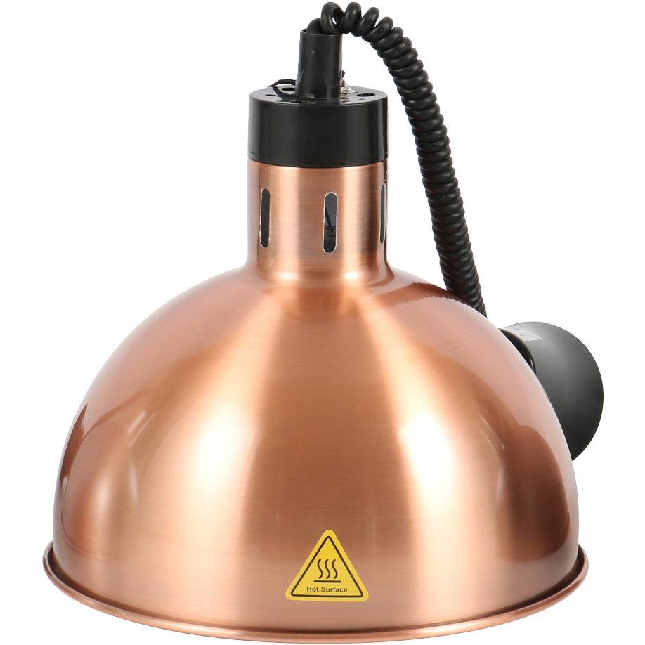 Original price was: 114,59 €.67,61 €Current price is: 67,61 €. (ei sis. KM) Šī pie griestiem stiprināmā komerciālā siltuma lampa ar ievilkamu vadu, sudraba krāsā, ir uzticams un stilīgs risinājums ēdienu uzturēšanai karstu. Ideāli piemērota izmantošanai pie ēdiena nodošanas vietas vai pašapkalpošanās bufetes zonās, lampu var viegli pielāgot, lai ēdiens saglabātos pievilcīgs un atbilstošā pasniegšanas temperatūrā. Diametrs: 290mm Vada diapazons: 600 līdz 1500mm Lampas jauda: 250W Ir noliktavā