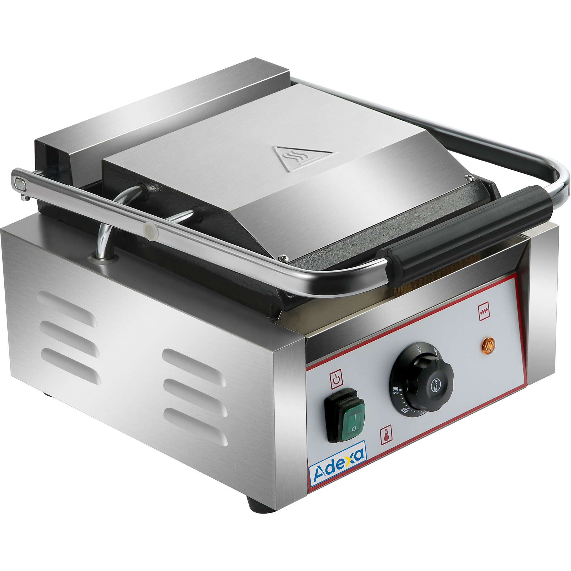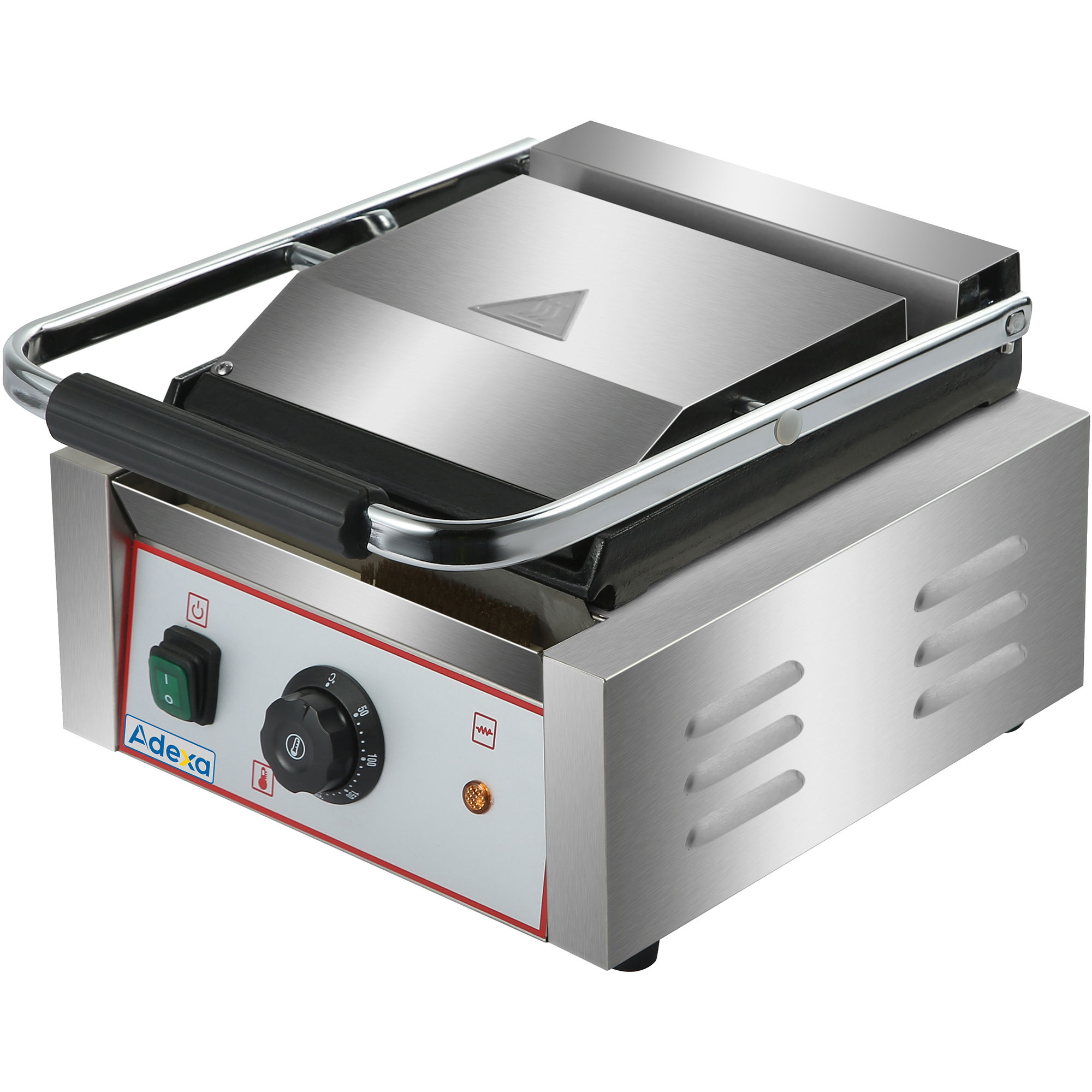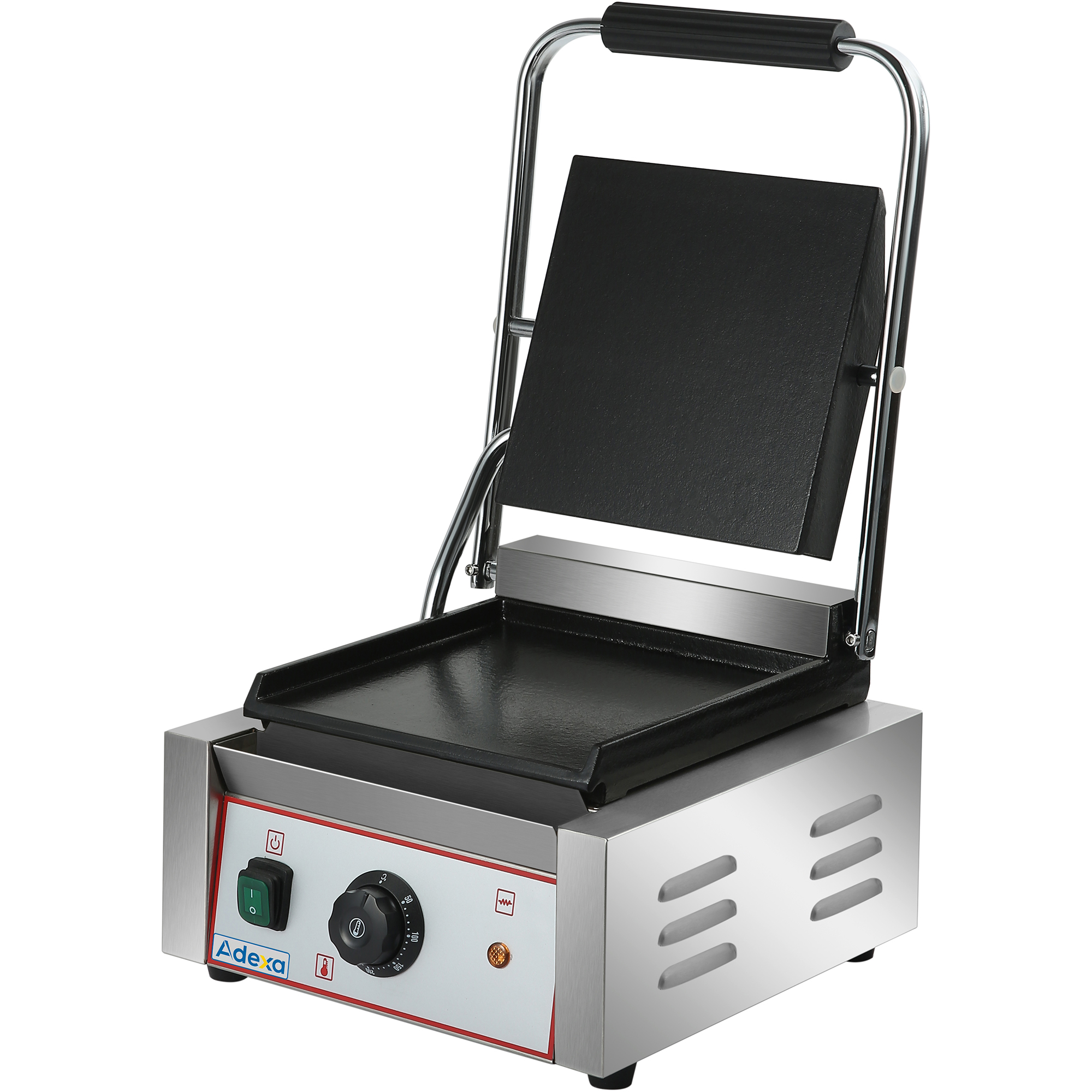 Original price was: 93,82 €.42,22 €Current price is: 42,22 €. (ei sis. KM)Izturīgs Panini kontakts grils ar vienu gludu virsmu | Adexa EG01B