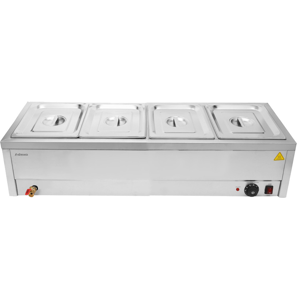 Tirdzniecības Bain Marie 4xGN1/2 konteineri un vāki Ar iztukšošanas krānu | Adexa BR11045