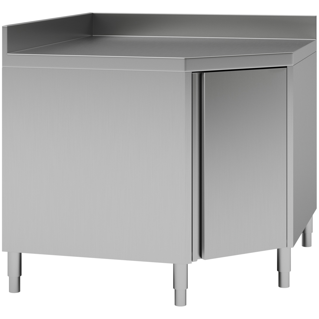 Tirdzniecības Darbvirsmas Grīdas Skapja Stūra Vienība Ar Veramām Durvīm Nerūsējošā Tērauda Sāni 700mm Augšējā Mala | Adexa VTC107CB