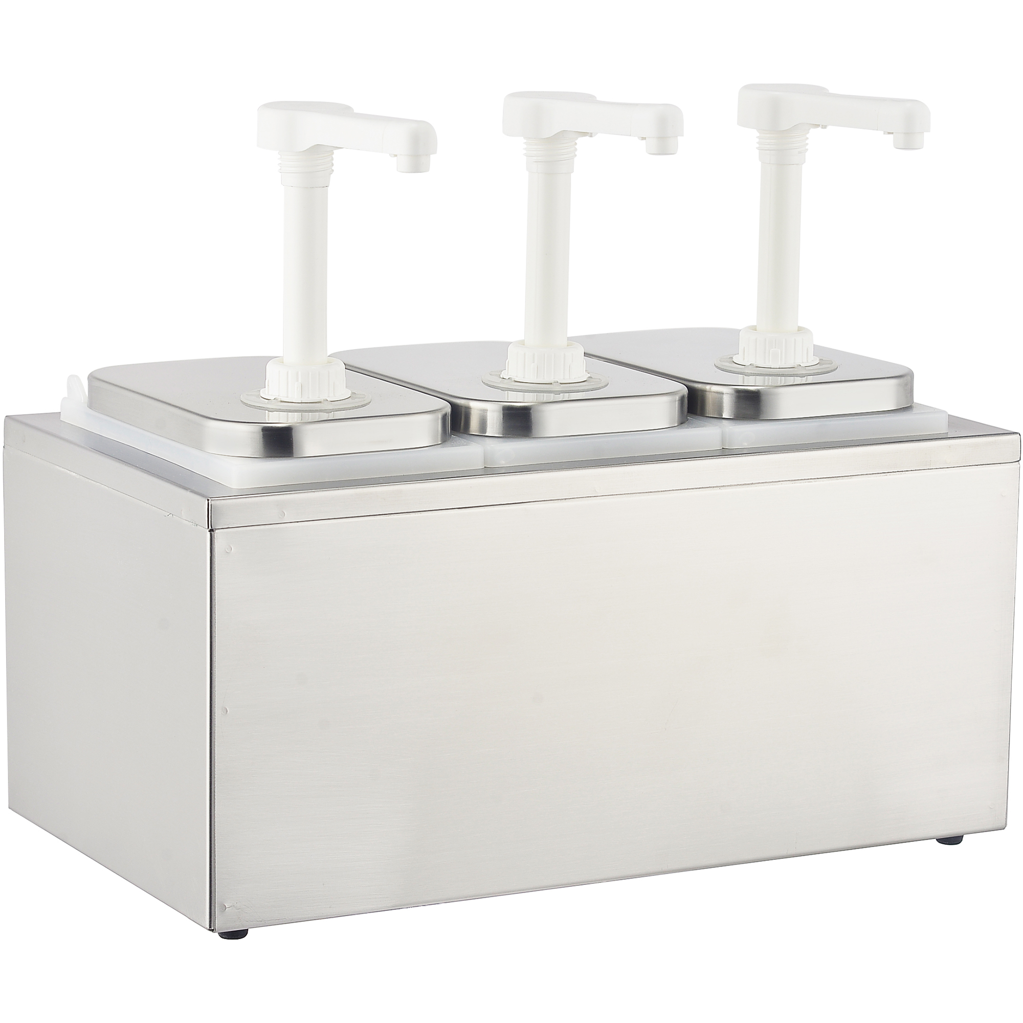 Original price was: 189,34 €.126,86 €Current price is: 126,86 €. (ei sis. KM) Organizējiet un uzturiet garšvielas savā koncesijas stendā, uzkodu bārā vai saldējuma salā ar šo garšvielu dozatoru! Šis dozators ir ideāli piemērots hotdogu, hamburgeru un desertu piedevām, kā arī majonēzei, sinepēm vai kečupam. Nerūsējošā tērauda sūkņi ir pielāgojami, lai pēc vajadzības izdalītu dažādus porciju apjomus, nodrošinot papildus daudzveidību un porciju kontroli. Šis dozatora komplekts ir izgatavots no izturīga nerūsējošā tērauda un pārtikai drošas plastmasas, nodrošinot ilgmūžību un vieglu tīrīšanu noslogotās komerciālajās ēdināšanas vidēs. Ir noliktavā
