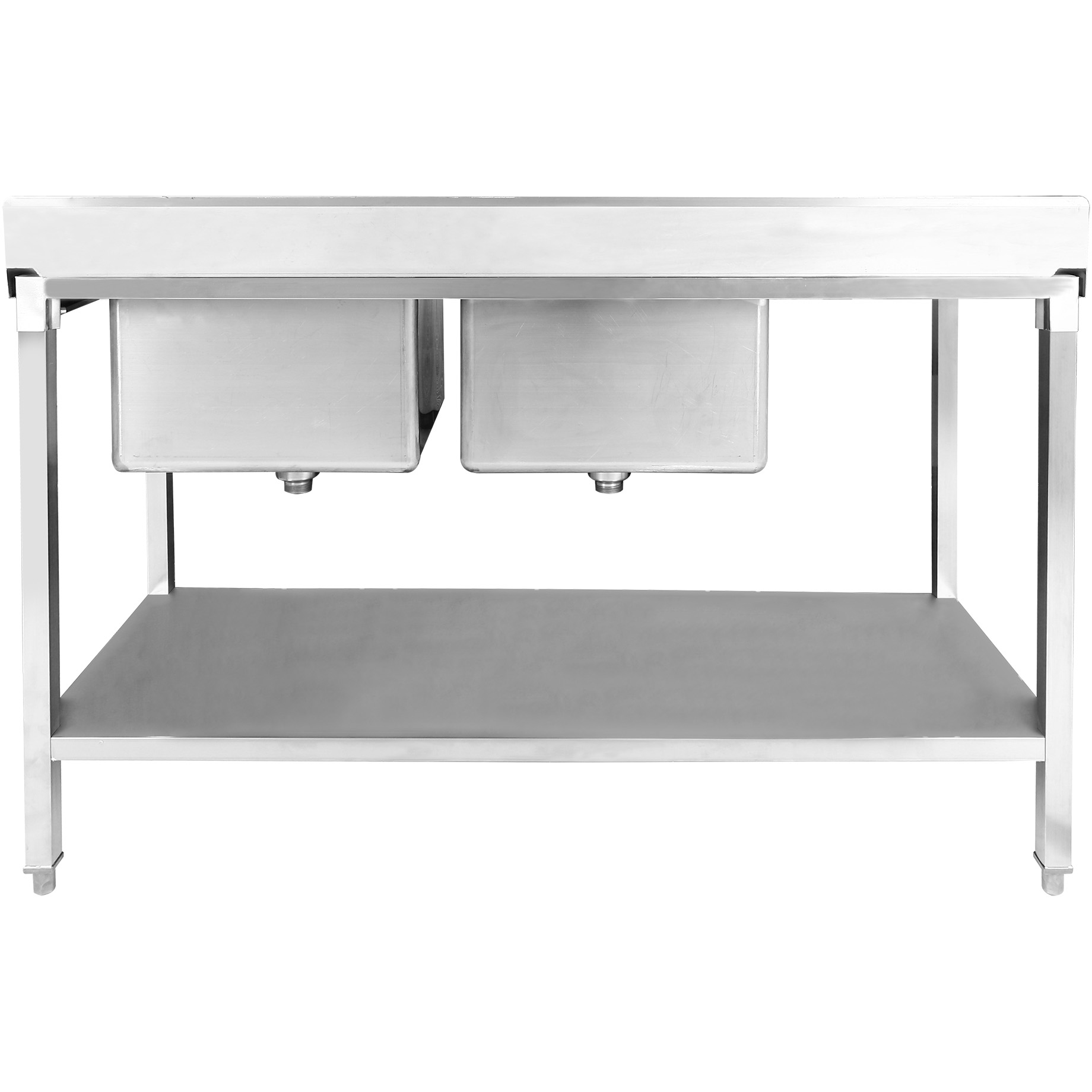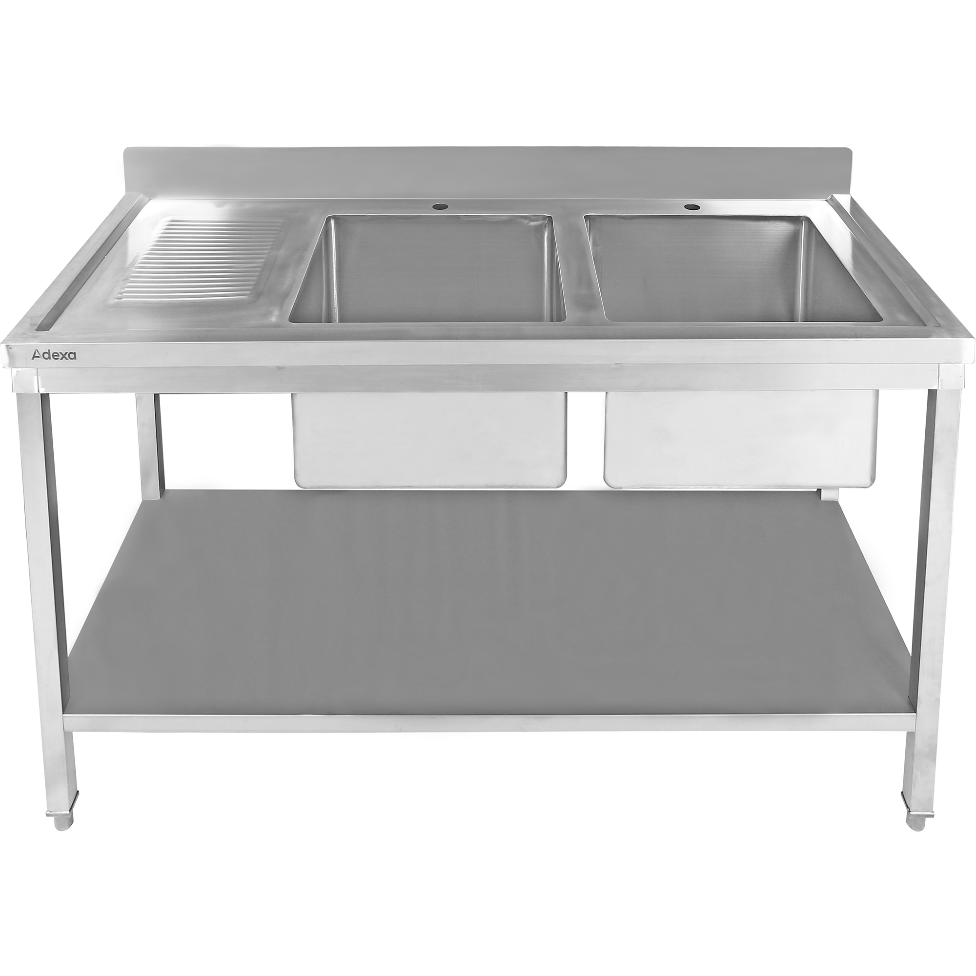Tirdzniecības izlietne Nerūsējošais tērauds 1500x600x850mm 2 bļodas pa kreisi ar noteces dēli Aizmugures plāksne Apakšplaukts | Adexa STT1560L