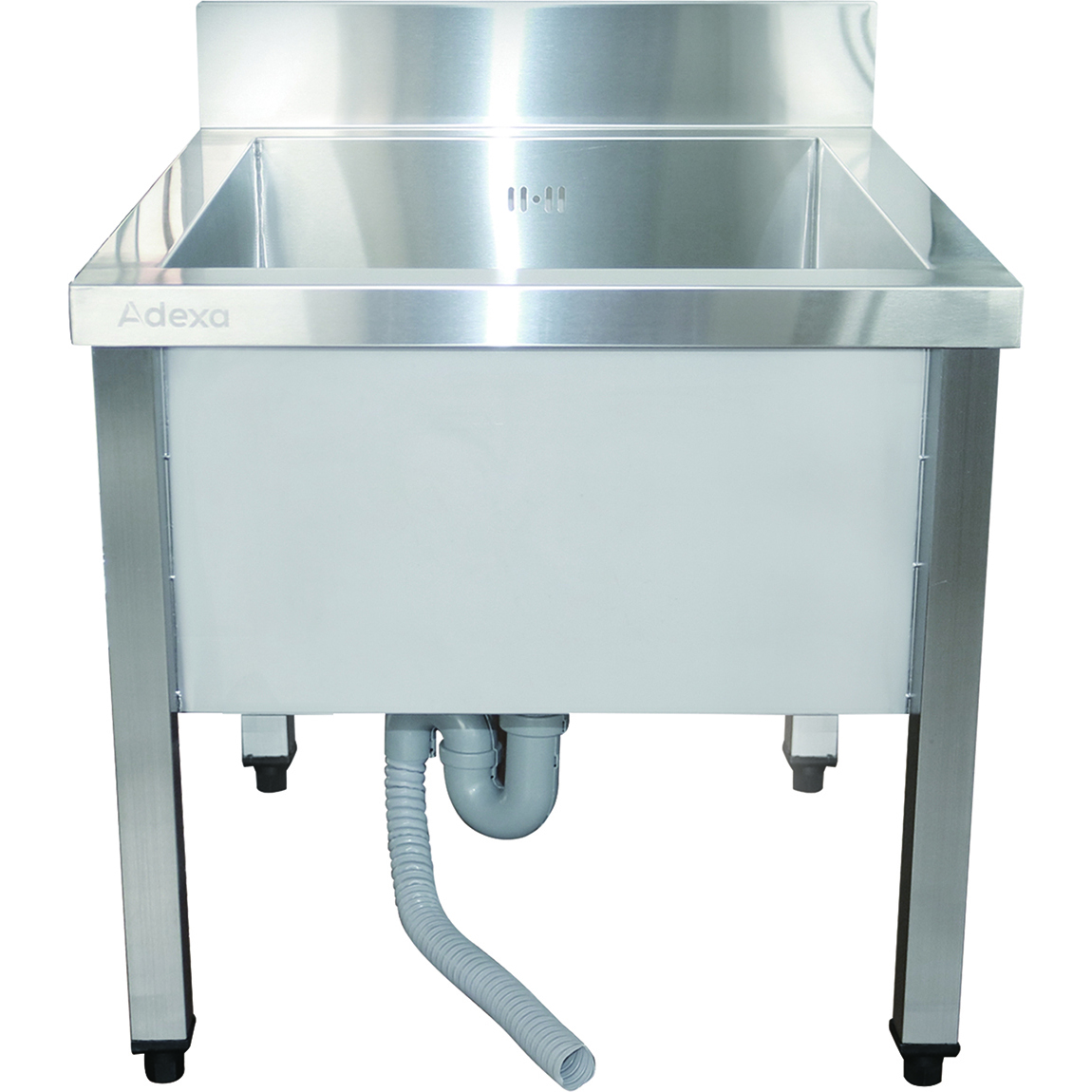 Zema komerciāla trauku mazgājamā izlietne Nerūsējošs tērauds 1 bļoda Aizsargsiena 600x600x660mm Kvadrātveida kājas | Adexa SMSJY6060